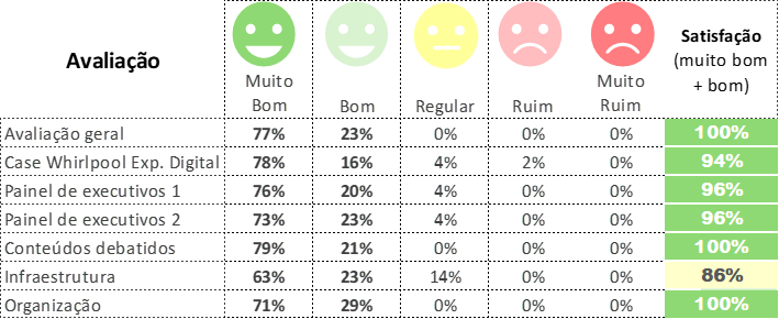 Como prometemos todo esse conteúdo sensacional não vai cair no esquecimento. Estamos produzindo o book com um cuidadoso compilado de tudo que foi discutido. O book vai trazer os insights produzidos e as experiências práticas compartilhadas, além do relatório detalhado da pesquisa que gerou a premiação. Se você participou do evento, fique tranquilo que receberá em seu e-mail o link para baixá-lo em breve.